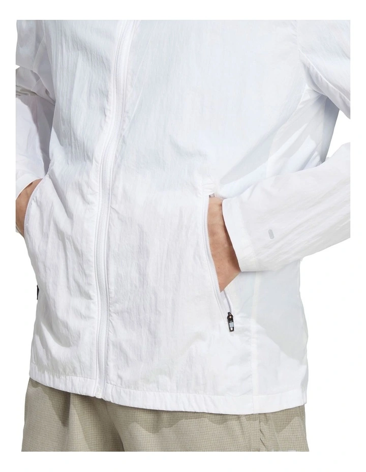 You’ve spent months preparing. Stay ready on race day in this adidas marathon warm-up jacket. The water-repellent finish sheds light showers, and stretchy side panels let you move freely as you limber up.