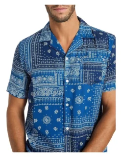 Drawing the eye to beautiful blues, this short sleeve shirt showcases an intricately detailed bandana-style print, set within a softly flowing lightweight base. Offering a regular fit with straight shaping at the hem, the shirt fastens at the front with contract Marcs logo buttons, with further detail found in a single patch pocket at the chest and a relaxed resort collar.