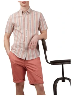 A short sleeve summer shirt in 100% cotton oxford designed in a block stripe.Â