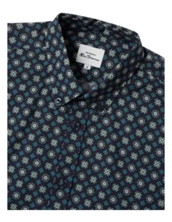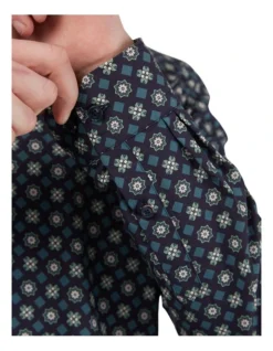 A long sleeve shirt designed in a foulard tile print that comes in a slim fit and made from 100% cotton.Â