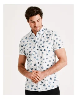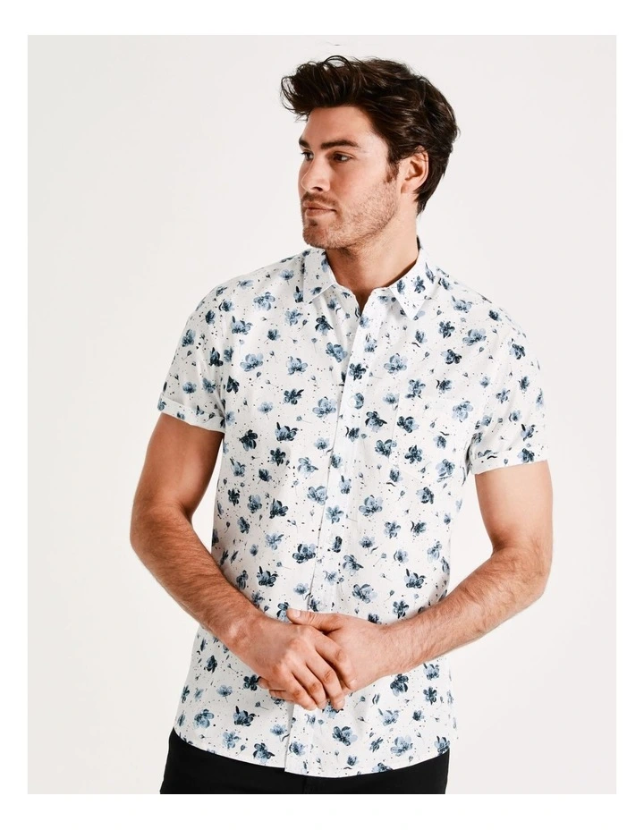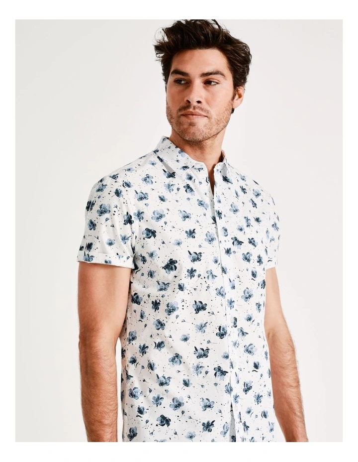 Kenji Brays Ditsy Print Short Sleeve Shirt in White