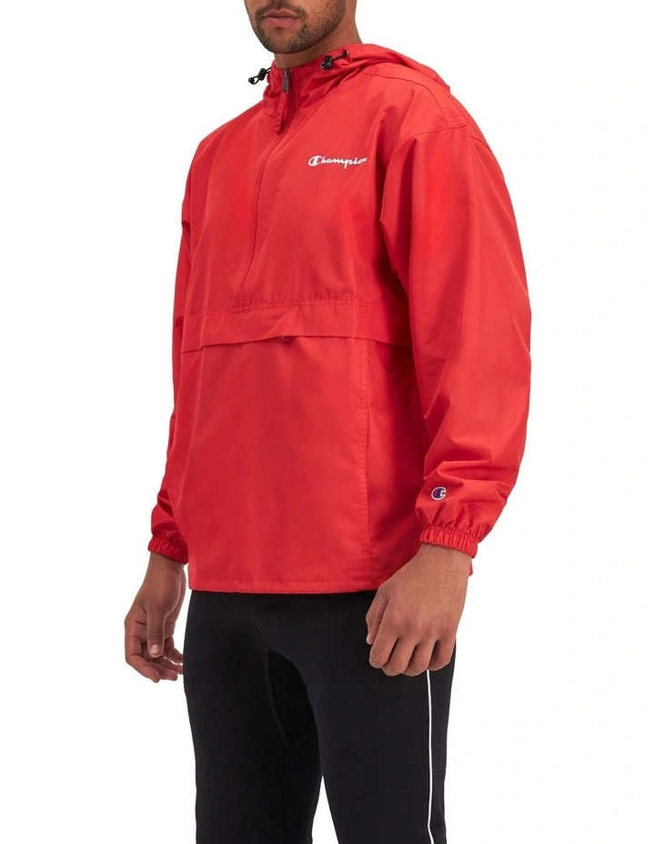Our Packable 1/4 Zip Jacket is made from lightweight and wind resistant polyester. Featuring a sckuba collar with hood, this jacket with loose fitting hem and adjustable shock cords can be packed into the front pocket for easy packing.