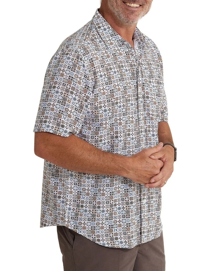 Add some coolness to your style with Columbus! The soft and drapey 100% bamboo fabric creates a luxurious finish whilst the unique Moroccan tiled print means that it can be styled with anything from dark wash jeans to light coloured pants.