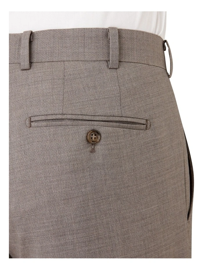 Experience style and comfort with these luxurious trousers made from a wool, elastane blend. With a subtle textured plain mlange taupe fabric, these trousers are a timeless choice that can be worn trans-seasonally, perfect for any occasion.
