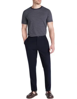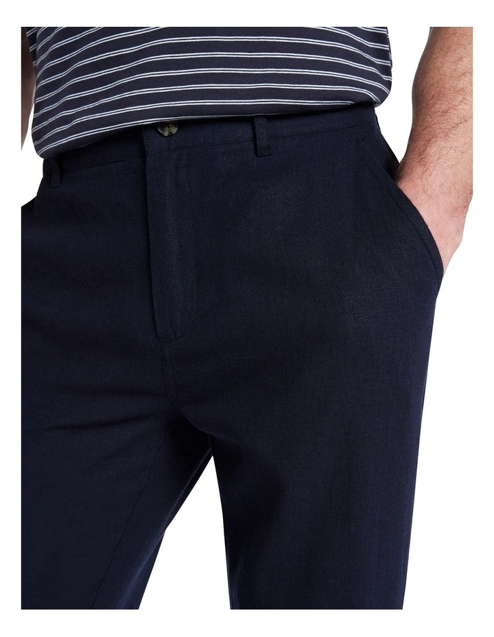 Navy in colour, these pants make dressing for summer that much easier, offering up relaxed shaping within a lightweight linen blend. Fastening with a button and concealed fly front closure, the pants descend from a classic mid-rise through a straight leg to full length, with further functional detail found in belt loops at the waist and handy pocketing front and back.