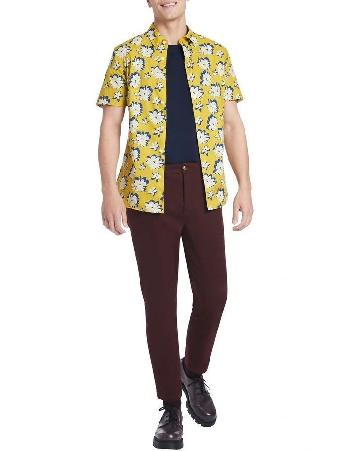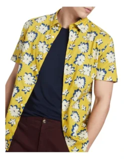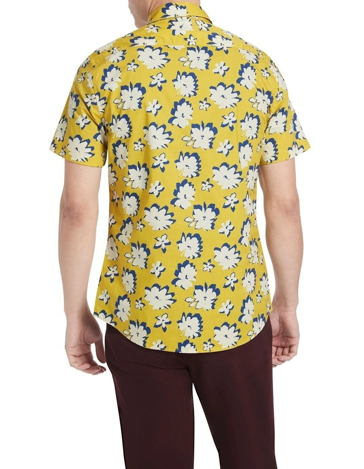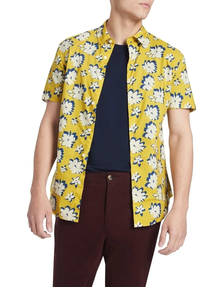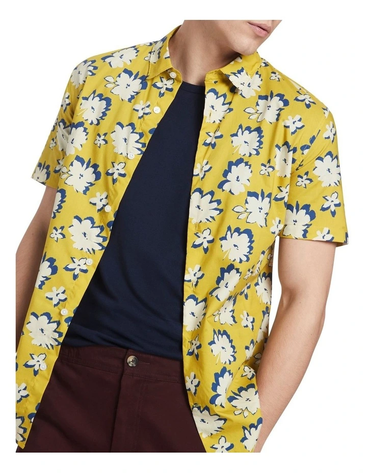 Bright and bold, this short sleeve shirt looks just as amazing layered over a tee as it does buttoned down and worn on its own. Featuring a corn yellow base with a large flower print, the shirt uses pure lightweight cotton to create a regular fit throughout, completed by a full button front fastening, a classic shirt collar, and curved shaping at the hem.