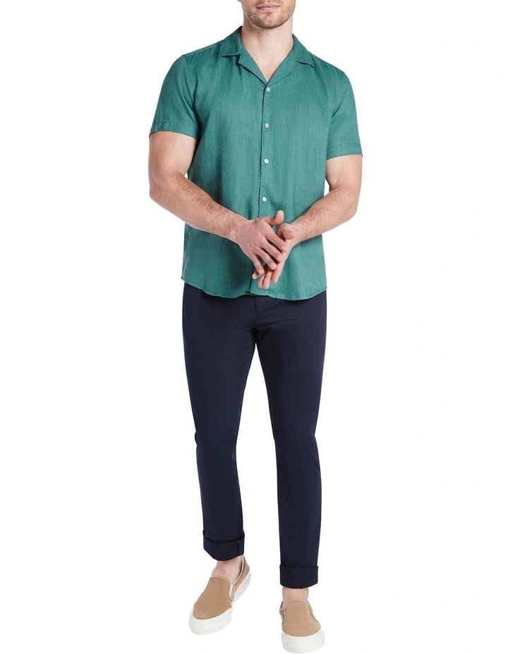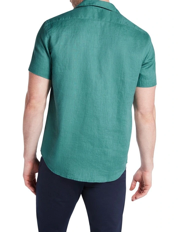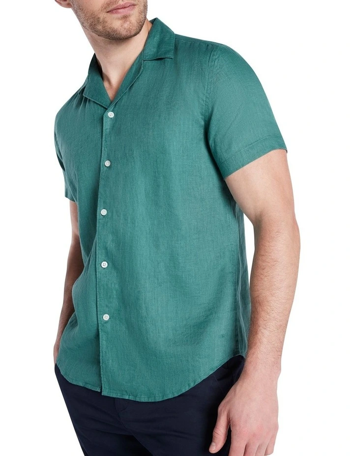 Sure to become an essential as we step into summer, this short sleeve shirt feels gorgeously soft against the skin, made from lightweight linen in a zucchini green colouring. Offering a regular fit with curved shaping at the hem, the shirt fastens at the front with contrast white buttons, set below a relaxed open collar.