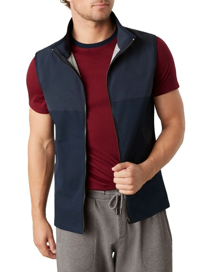 We think that every guy needs a Gilet in is clothing repertoire. That’s why we made the Fraser Tech Gilet. Forming a part of our ‘Made to Move’ range, it’s crafted from a tech performance fabric. The top side of the fabric is navy and revere side is grey melange, and resembles that of a vintage sailing staple.