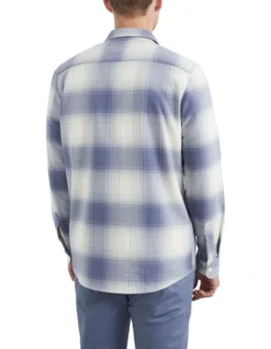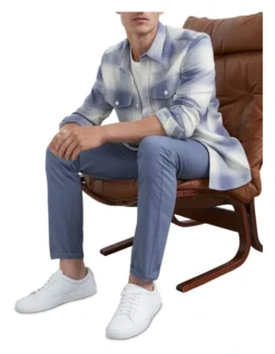 Our Blue Check Classic Fit Shirt is a versatile piece for your trans-seasonal wardrobe. This trendy button-down shirt features two front pockets with flaps, larger placket and buttons, a curved hem, long sleeves and regular fit, and is made from a heavier cotton so it can double as a lightweight jacket. Style with our Slim Chino Pant and Liam Leather Sneaker.Â