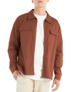 The shacket features classic patch pockets across the chest, two way zipper to the centre front, curved hem finish and premium logo emboss patch to the front hem.