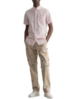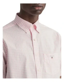 Crafted in cotton broadcloth with a gingham pattern, this regular fit short-sleeved shirt has our signature button-down collar, logo embroidery at the chest, and locker loop and boxpleat at the back.