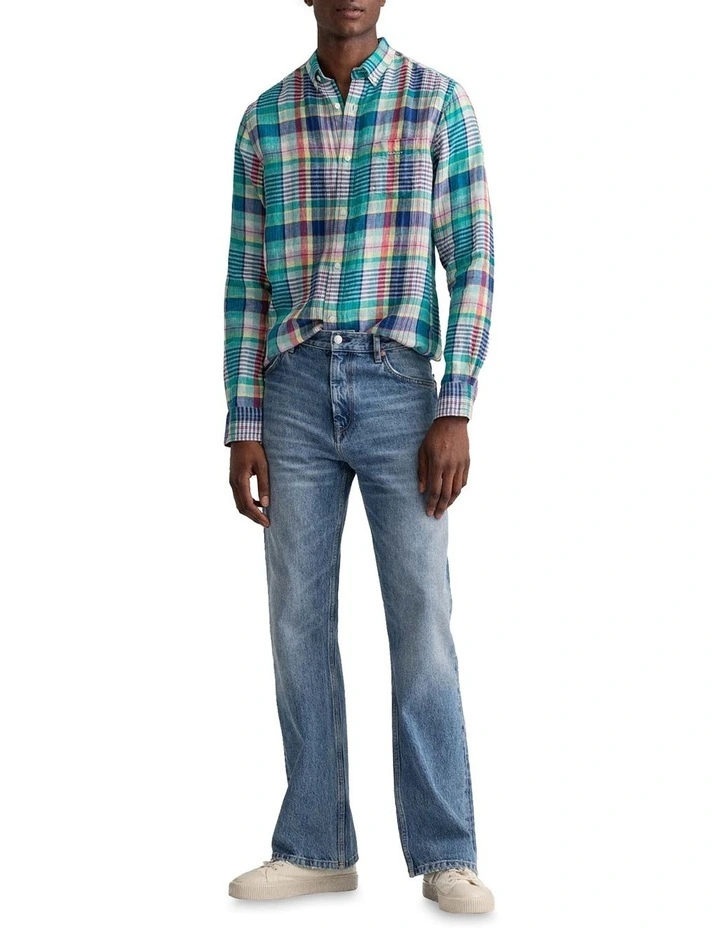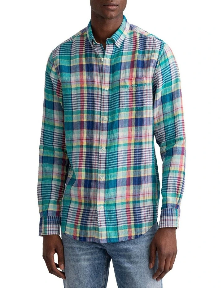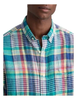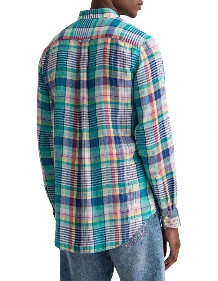 Breathable linen meets preppy madrasa summer staple for decades. This Regular Fit Colourful Madras Linen Shirt is a casual summer essential, and features a button-down collar, logo embroidery at the chest, and our innovative boxpleat and locker loop at the back.