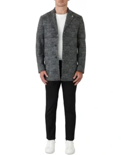 A versatile Black and White textured weave overcoat in our classic Mercury style. Wear over your 9 to 5 suit on your daily commute, or with a knit and chinos for easy winter weekend styling.Â