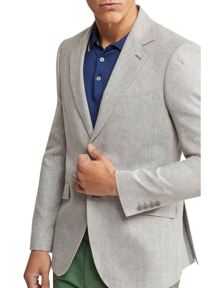 The Blake Linen Blend Herringbone Blazer is your instant style upgrade. This dapper blazer is perfect for the warmer months with its lightweight linen and cotton fabric. It is cut in a slim fit and has a subtle herringbone pattern for a more casual feel. Wear it with some chinos in a fashion colourway and some sneakers for a fresh look.
