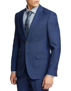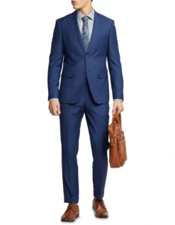 When you need to look your best, the Byron Wool Suit Jacket has you covered. This premium suit is crafted from Verified Australian Merino Wool that has been sourced from farms in New South Wales. It is cut in a slim fit and features side and chest pockets, a double-button front and notch lapels. Internally the jacket has a unique signature Oxford lining and three pockets. Wear yours with the coordinating Folded Cuff Wool Suit Trousers with a striped shirt and brown leather shoes.