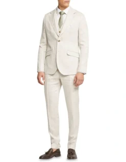 Take your suiting style to the next level with the Linen Vest. The three-piece suit is back and this dapper linen vest is the perfect choice in summer. It is crafted from 100% soft and breathable linen in a natural colourway and features side welt pockets, a chest pocket and an adjustable back strap to achieve the perfect fit. For a modern and stylish look wear it with the matching Blake Linen Blazer and Folded Cuff Linen Trousers.