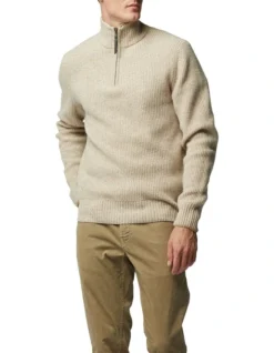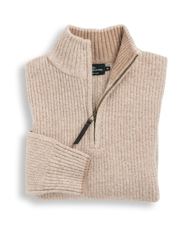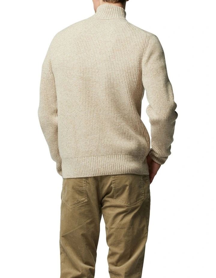 This sweater is expertly crafted from an extra fine lambs wool, textured with a melange yarn. Spun in Italy, knitted with a rib texture on the body, jersey side seams and sleeves, and trimmed with premium YKK zip front.