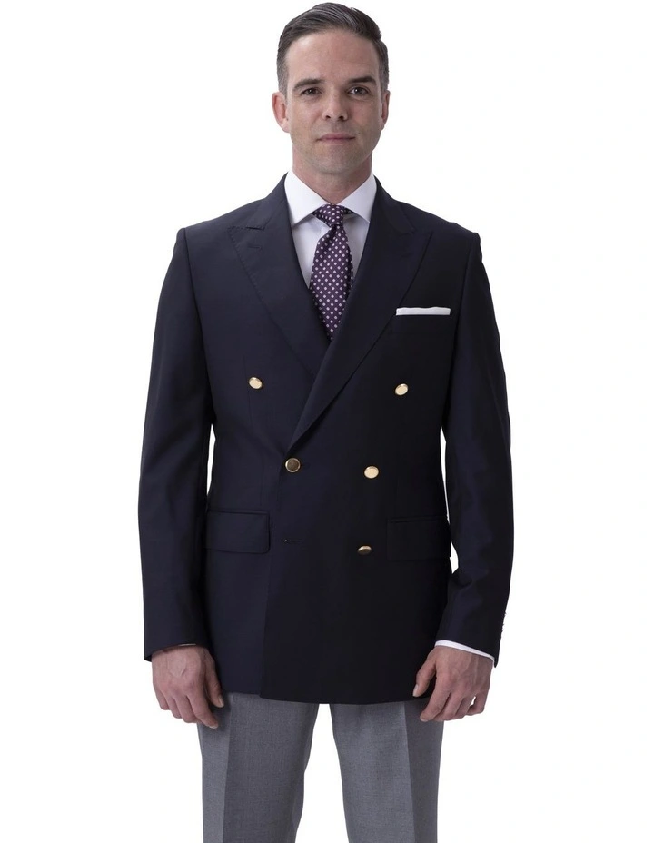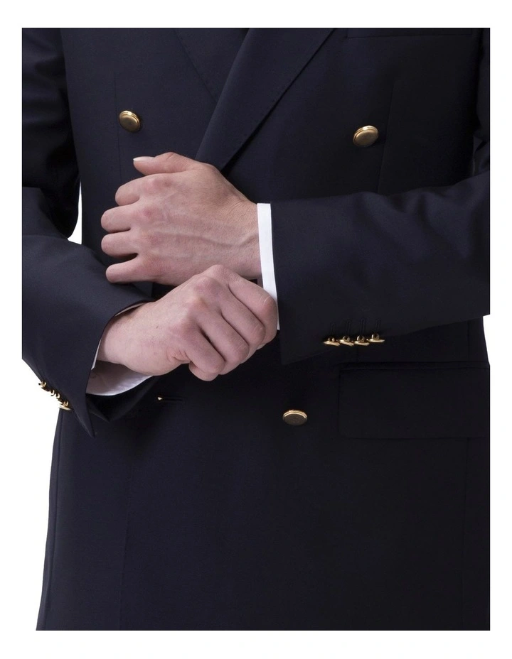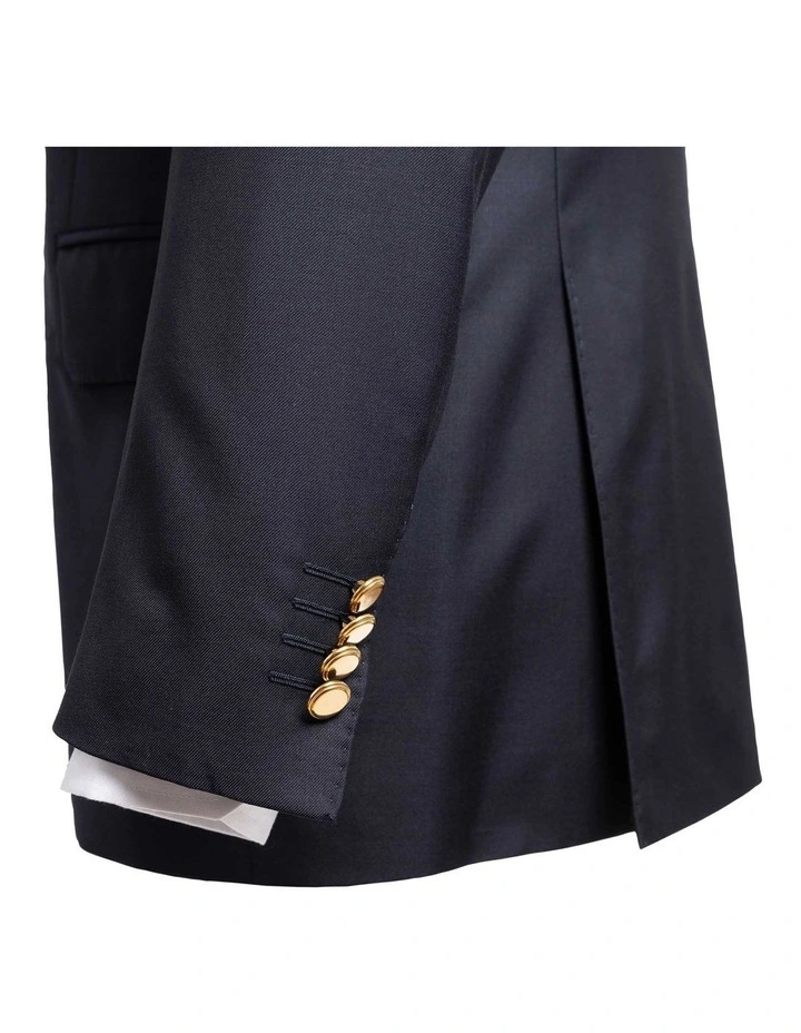 The Henry Sartorial plain twill Navy Blazer features gold button detailing with chest and two flap pockets, three internal pockets, soft shoulder in pure wool.