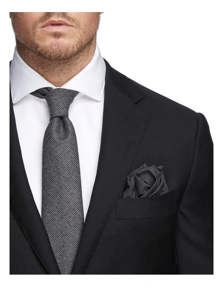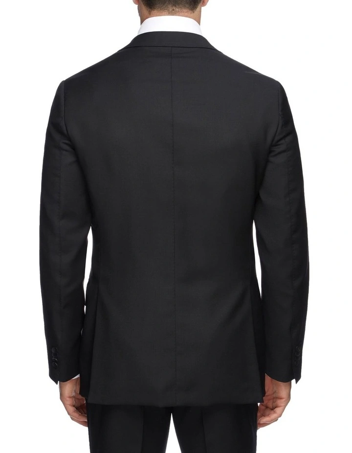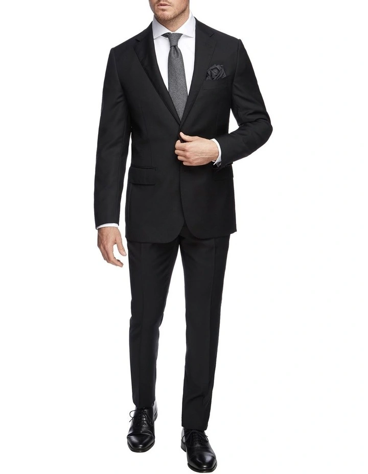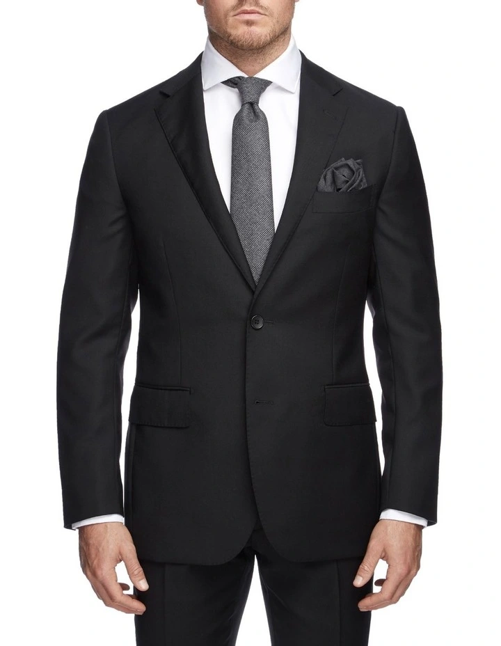 M.J. Bale raises the bar on boardroom attire with the tailored Saunders Slim Jacket in Black, crafted in Italy from superfine Australian merino wool. The single breasted front and narrow notched lapels complement the slimmer fit, with functional buttons and twin vents for added practicality. This Jacket is timeless enough to be styled on its own, or pair with the matching Saunders Slim Black Trousers for an immaculate formal look.