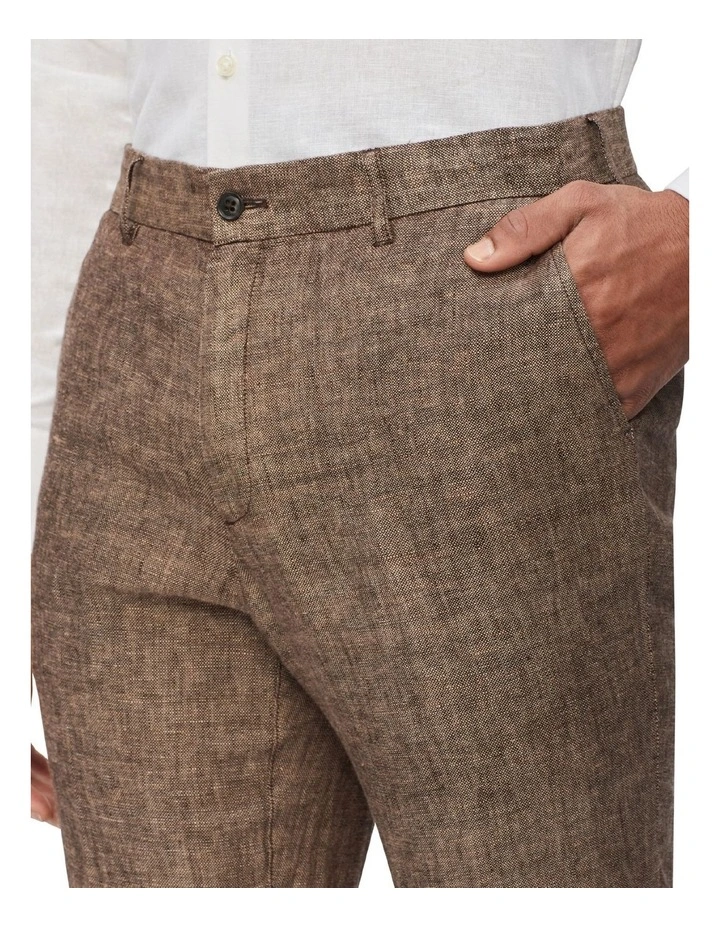The Slim Plain Linen Suit Pant Brown is constructed in the Van Heusen Slim Fit, a flattering fit tapering down through the waist and emphasising the chest, making for a sleek silhouette. Polished and stylish, this Suit jacket transitions effortlessly from office to special event. Pair with matching jacket sold separately.