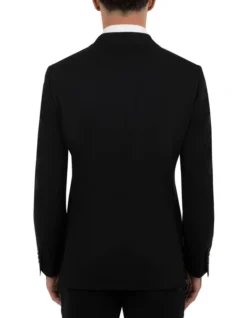 This tailored fit Stefano jacket exudes Dom Bagnatos classic style. The super 120s pure wool has a beautiful drape, and the subtle crpe texture in the weave makes this his blackest black. Perfect for work or your next formal event, pair it with the matching Fabio trouser, and the Silvio vest makes a three piece.