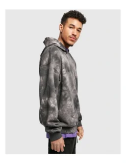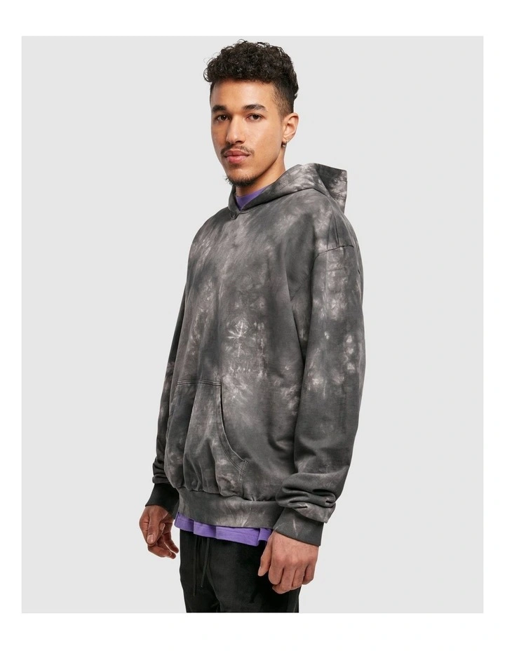This eye catching hoody reinterprets classic hoody style with a tie-dye look and slight gathering on sleeves and hem. Features generous hood, kangaroo pocket and wide rib cuffs on sleeves and hem. The fit is oversize this includes slightly widened shoulders. For your wearing pleasure this tie dye hoody is made of smooth terry cotton fabric.