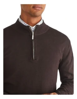 Cut to a Regular fit, the Van Heusen 1/3 Zip Sweater features a quarter zip with logo detail, ribbed neckline and waist. Soft, lightweight and comfortable, this sweater is a great layering piece to add to your transeasonal wardrobe.