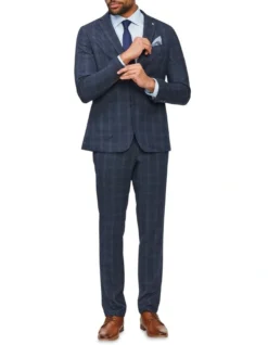 The Tailored Big Check Suit Pant Navy With Chocolate Detail is constructed in the Van Heusen Tailored Fit, a flattering fit tapering down through the waist and emphasising the chest, making for a sleek silhouette. Polished and stylish, this Suit jacket transitions effortlessly from office to special event. Pair with matching pants sold separately.